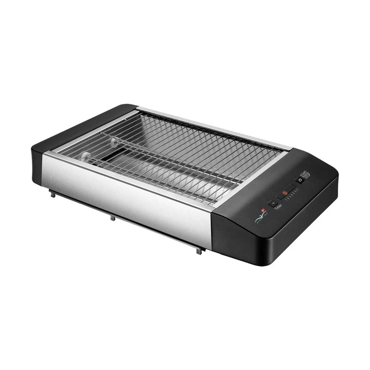 Den flade brødrister har plads til 4 almindelige skiver brød. Den har desuden elektronisk timer, så bollerne ikke brænder på.