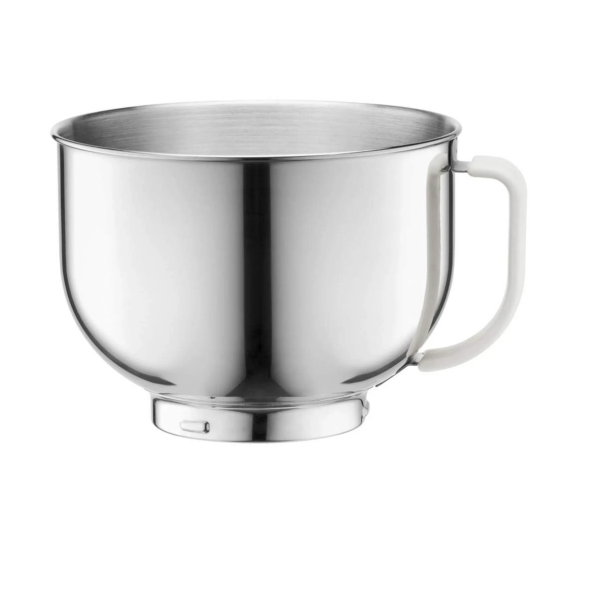 Skålen rummer 4,7 liter, så du let kan røre en dej og bage boller til hele familien. Skålen er i rustfrit stål med hvidt håndtag.