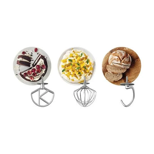 | Tilbehør medfølger | Dejkrog, piskeris og K-spade, |