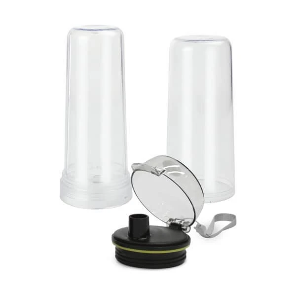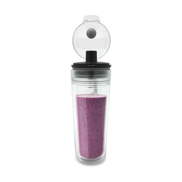 Du får to beholdere med til blenderen – en på 450 ml til at blende i og en på 650 ml til at skabe termoeffekt. Ved at sætte den lille beholder indeni den store, skabes en isolerende termoeffekt, så din smoothie holder sig kold og læskende i lang tid.